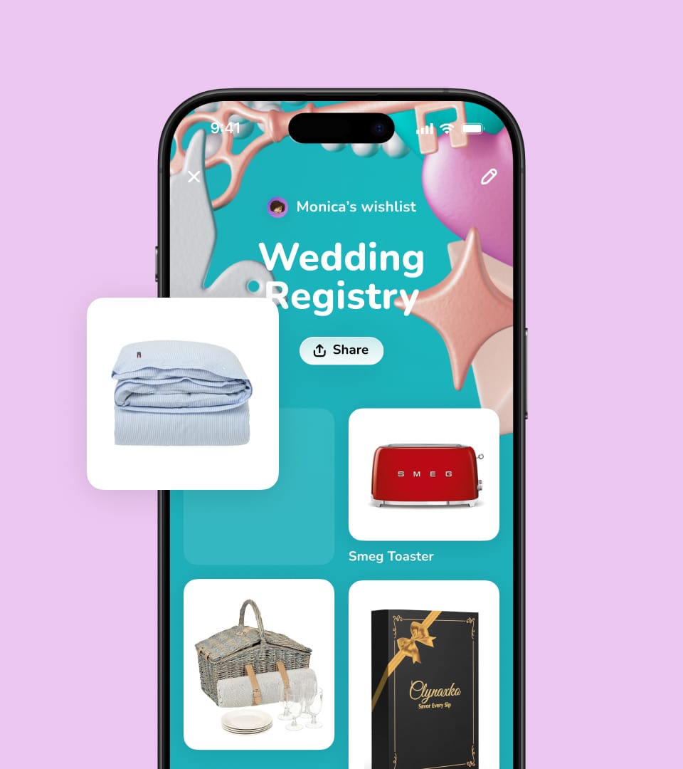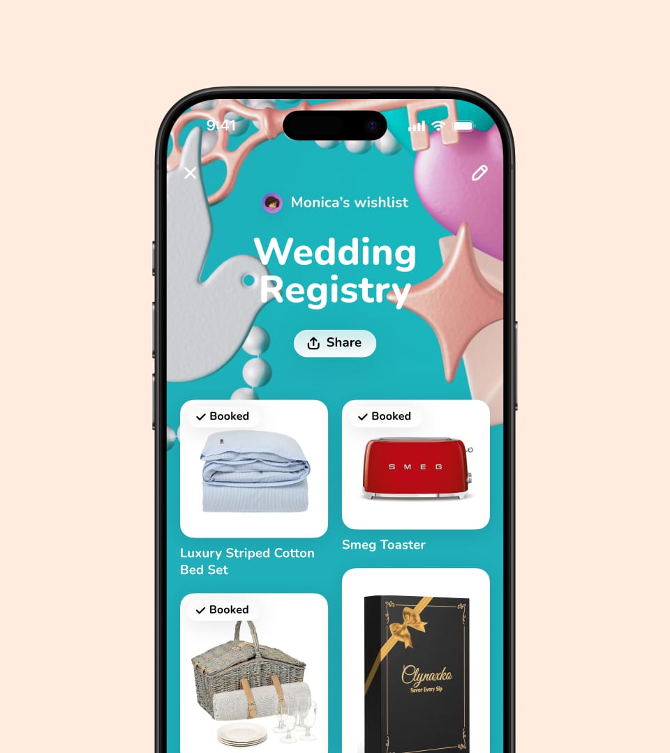 Create a one-of-a-kind wedding registry and share it with loved ones to make your celebration as unforgettable and joyful as your love story.